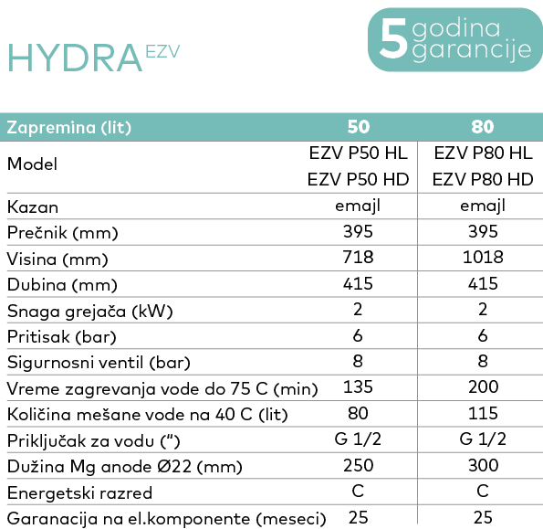 Tip i model: Metalac Bojler Hydra EZV P80 HL