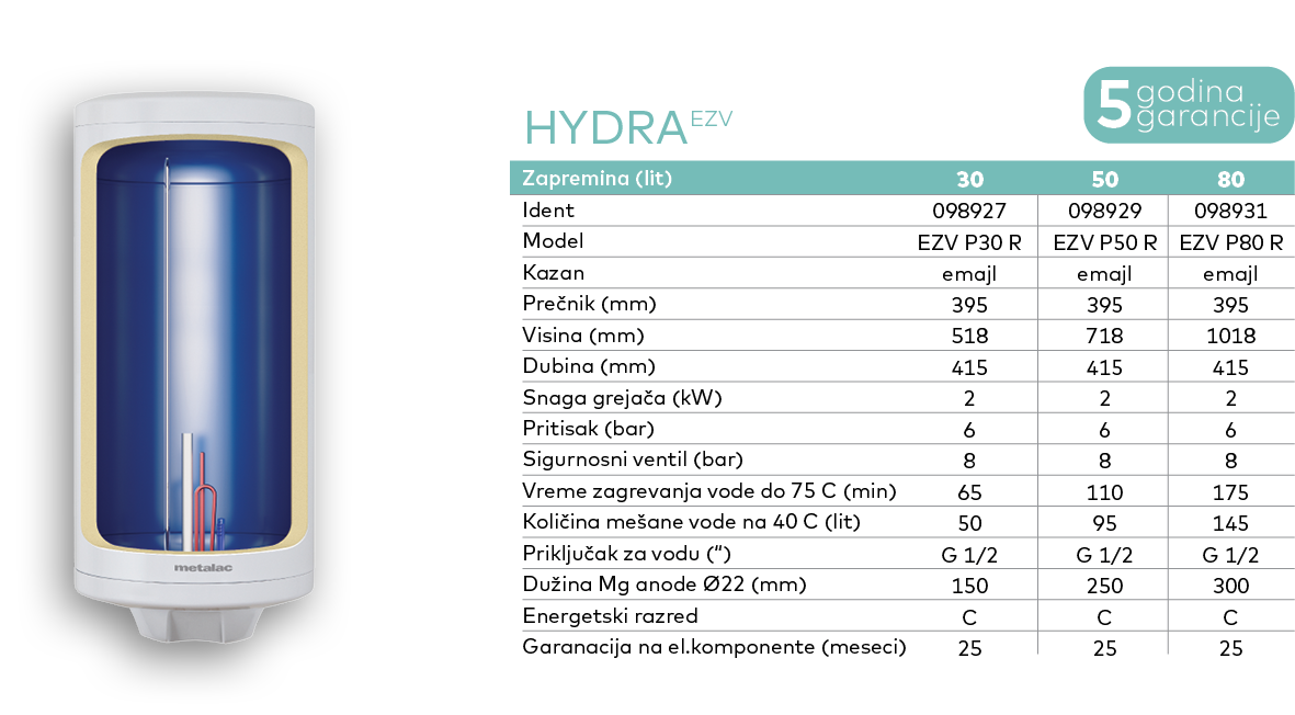 Tip i model: Metalac Bojler Hydra EZV P80 R