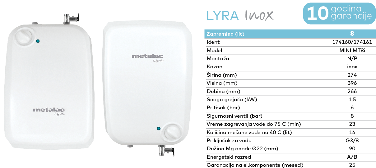 Tip i model: Metalac Bojler Lyra MT 8Ni Inox
