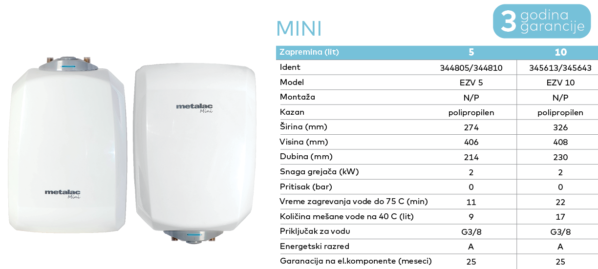 Tip i model: Metalac Bojler Mini EZV 5N